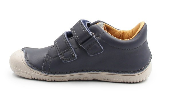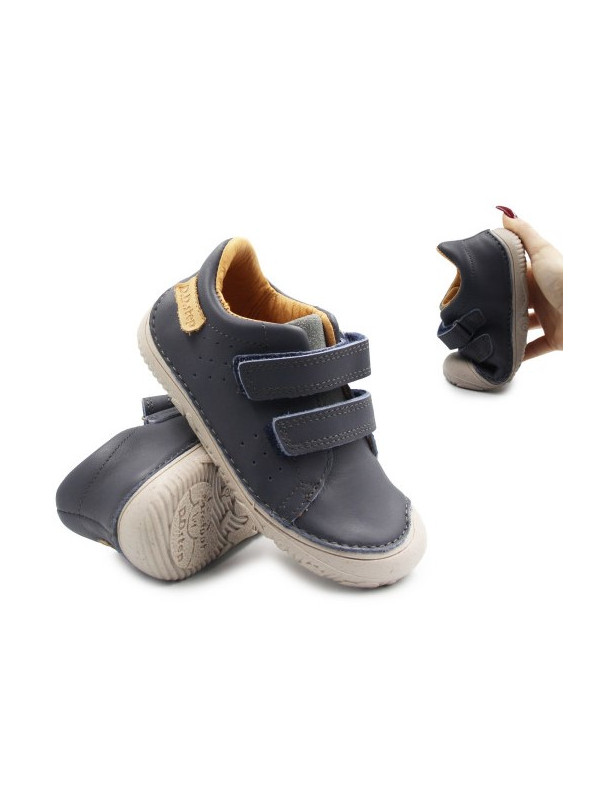 Buty dla chłopca, wykonane z miękkiej skóry nubukowej. Wyposażone w podeszwę Barefoot, którą cechuje wysoka elastyczność oraz uczucie chodzenia "na boso", zapewnia stopie maksymalne czucie powierzchni. Wkładka o zerowym spadku, co oznacza że nie posiada różnicy między palcami, a piętą.