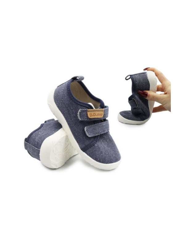 Dziecięce buty tekstylne w kolorystyce granatowej. To obuwie zarówno na dwór jak i jako obuwie zmienne do szkoły czy przedszkola. Regulowane za pomocą dwóch rzepów, które są szybkie, łatwe oraz praktyczne w użyciu. Wkładka delikatnie podpiera łuk stopy. Posiadają podeszwę Barfeoot, która charakteryzuje się wysoką elastycznością.