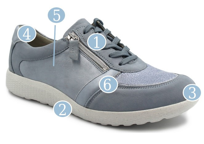 Półbuty damskie wykonane z wysokiej jakości skóry i materiału tekstylnego, niemieckiej produkcji. Ich klasyczny wygląd sprawia, że dopasowują się do wiosennych oraz jesiennych stylizacji. Połączone jednocześnie ze sportem, a także elegancją. Wyposażone w dobry system amortyzacji i stabilizacji.