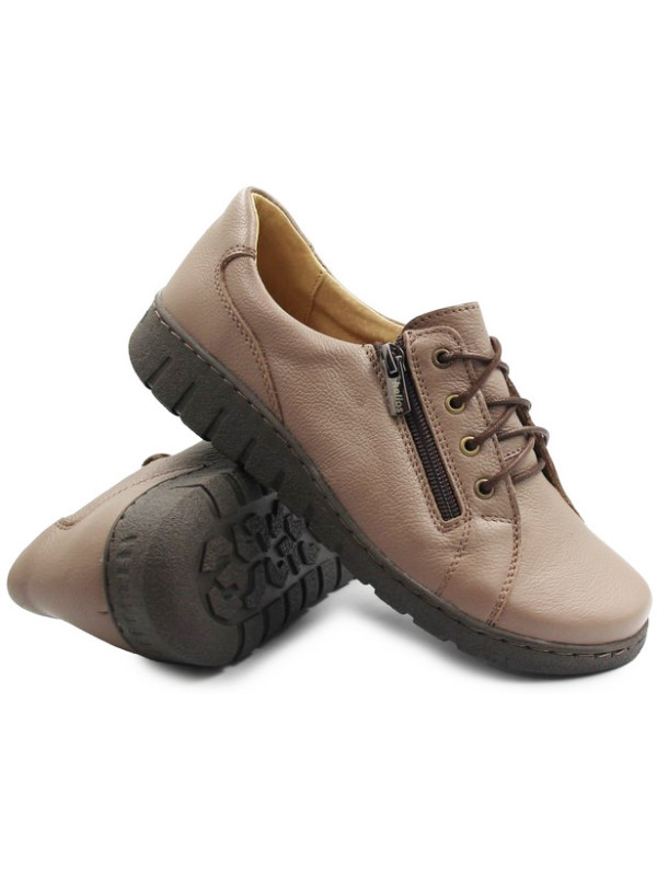Damskie buty skórzane wykonane z wysokiej jakości skóry naturalnej. Do eleganckich oraz klasycznych stylizacji, a to dzięki jego uniwersalnej kolorystyce. Posiadają praktyczne zapięcie na suwak oraz dodatkowo sznurowadła. Obuwie dopasowuje się do kształtu stopy, zapewniając wysoki komfort noszenia. Podeszwa posiada podwyższenie w okolicach pięty. Wyprofilowana wkładka pokryta jest dodatkową pianką SOFT, jest to miękka, elastyczna i amortyzująca warstwa, która korzystnie wpływa na poprawę komfortu podczas użytkowania obuwia.