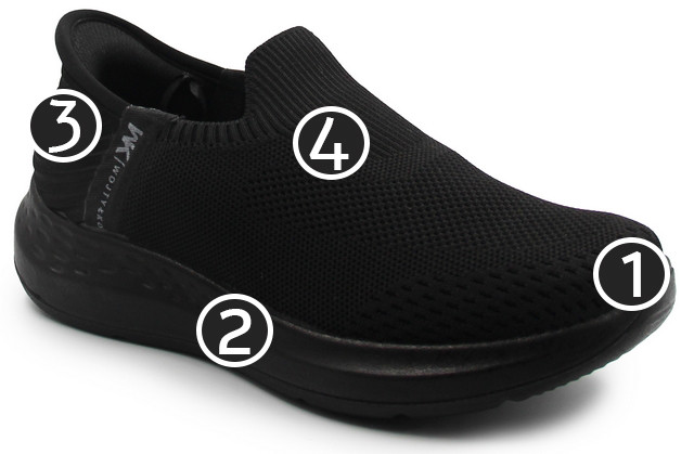 Sportowe półbuty wykonane z oddychających materiałów, które dopasowują się do szerokości stopy. Podeszwa jest bardzo lekka i odpowiada za amortyzację wstrząsów od podłoża, na jakie narażona jest stopa, szczególnie w okolicy pięty. Zapiętek zapobiega przesuwaniu się pięty na boki i stabilizuje stopę, pomaga w prawidłowym rozłożeniu ciężaru ciała.