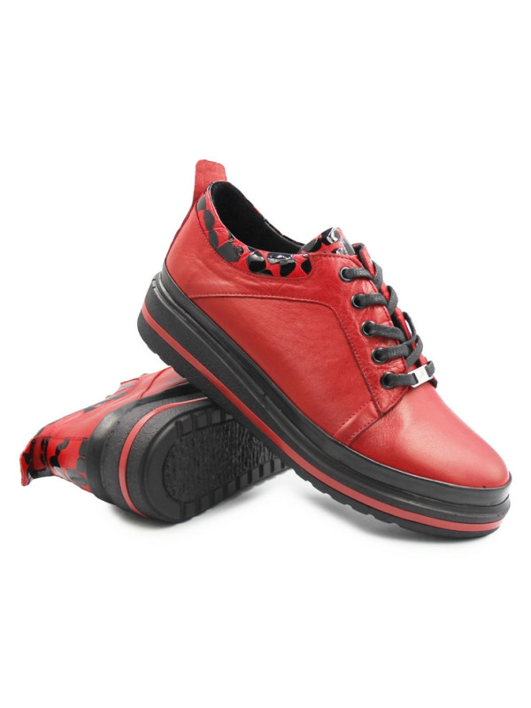 Manitu 850042-04 rot to wygodne, skórzane buty damskie w modnym czerwonym kolorze z czarnymi detalami. Łączą w sobie sportową lekkość sneakersów z elegancją naturalnej skóry, dzięki czemu sprawdzą się zarówno w codziennych, jak i bardziej stylowych zestawach. Idealne dla kobiet, które cenią komfort, jakość i niepowtarzalny design.