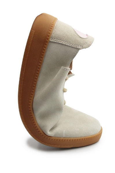 Kolor beżowy z różowym serduszkiem sprawia, że buty są uniwersalne i łatwe do zestawienia z różnymi stylizacjami.