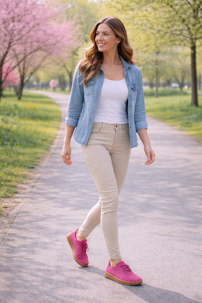 Stylowe półbuty damskie w kolorze fuksji T. Sokolski W26-611 to propozycja dla kobiet, które cenią komfort, naturalne materiały i minimalistyczny design. Ten model doskonale sprawdzi się jako buty codzienne, półbuty na wiosnę, lato i jesień, zapewniając wygodę przez cały dzień - zarówno podczas spacerów, pracy, jak i aktywnego dnia w mieście.