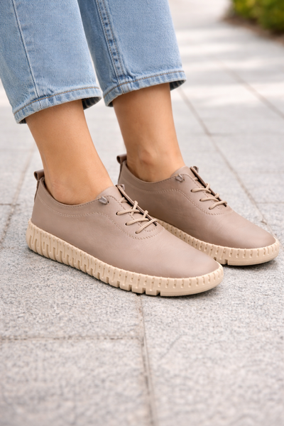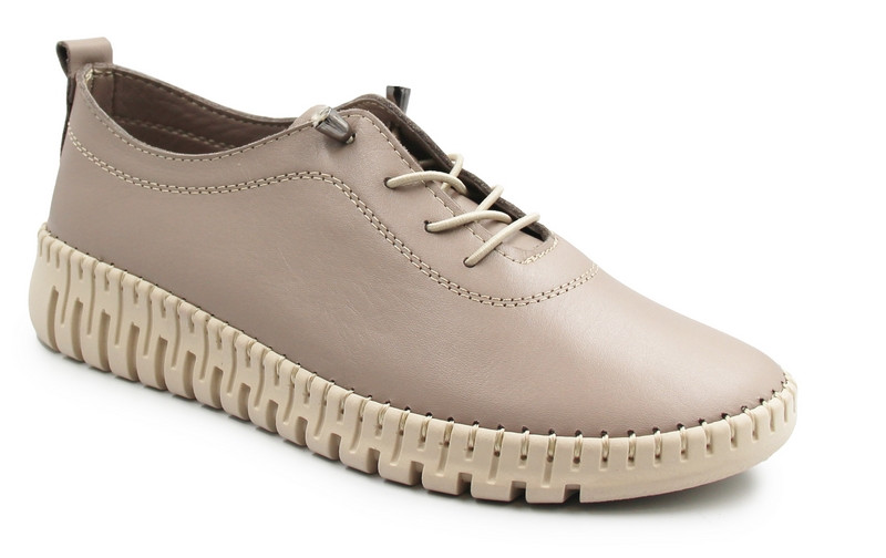 Buty wykonano z wysokiej jakości skóry naturalnej w uniwersalnym kolorze, który łatwo dopasować do wielu stylizacji - zarówno casualowych, jak i bardziej eleganckich. Charakterystyczna, elastyczna podeszwa z głębokim bieżnikiem nadaje modelowi nowoczesny wygląd i zapewnia stabilność na różnych nawierzchniach.