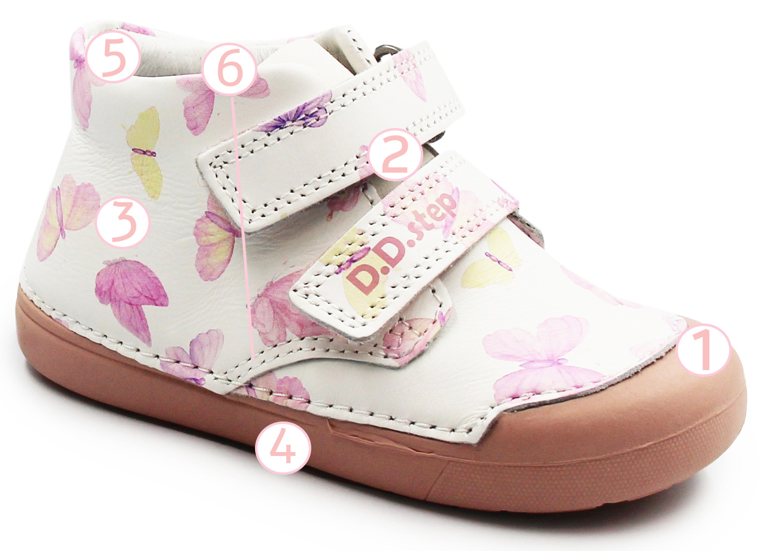 Buciki dziewczęce w kolorze białym sprawdzą się zarówno na co dzień jak i do bardziej wyszukanych stylizacji. Dziewczęce kolorystyka dodaje bucikom dodatkowego uroku. Wyposażone w dwa zapięcia na rzep, które charakteryzują się wysoką praktycznością i pozwalają dziecku na samodzielne zakładanie oraz zdejmowanie obuwia.