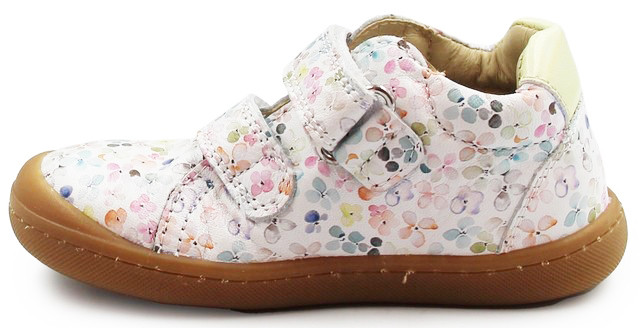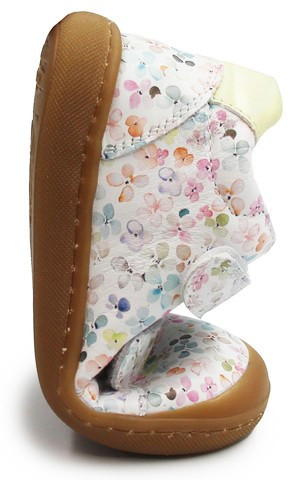 Dziewczęce buty na wiosnę z elastyczną podeszwą, która zapewnia swobodę ruchu stopy. Jest szersza w okolicy palców, dzięki czemu palce mogą swobodnie się poruszać. Zapinane za pomocą dwóch praktycznych rzepów. Wykonane w motywie kwiecistym. Wkładka posiada wiele cech, które pozytywnie wpływają na komfort podczas noszenia.