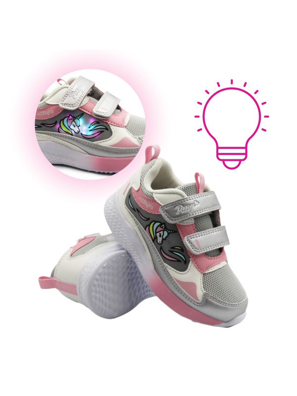 Te dziecięce sneakersy wyróżniają się magicznym motywem jednorożca, który nadaje im wyjątkowy charakter. Kolorowe elementy i precyzyjne wykonanie przyciągają wzrok. Buty są wygodne i lekkie, do codziennego użytku i aktywności na zewnątrz. Wyjmowana wkładka skórzana, to odpowiednia wentylacja stopy. Miękki materiał wewnątrz obuwia sprzyja komfortowi podczas noszenia. Wygodne, szybkie oraz praktyczne zapięcia za pomocą dwóch rzepów.