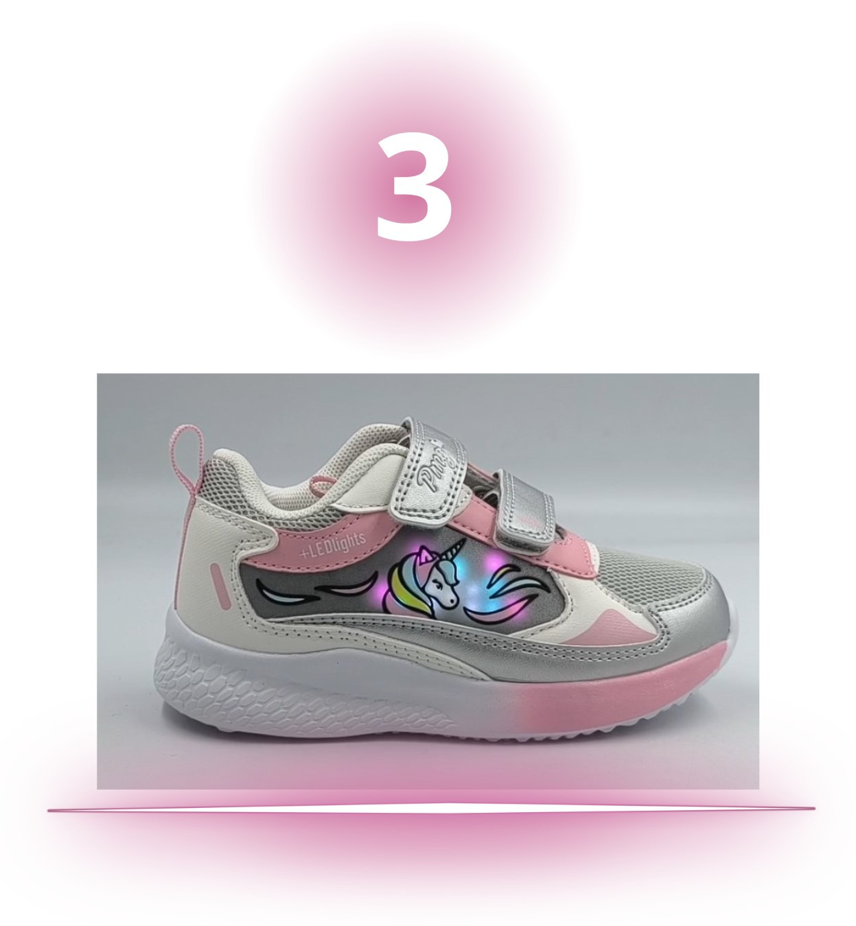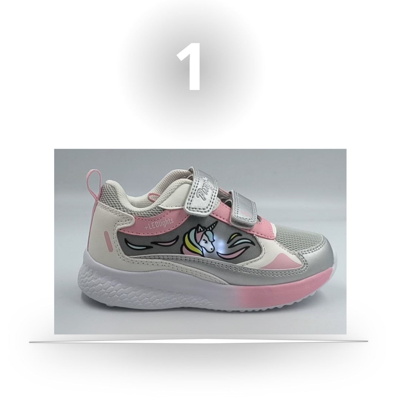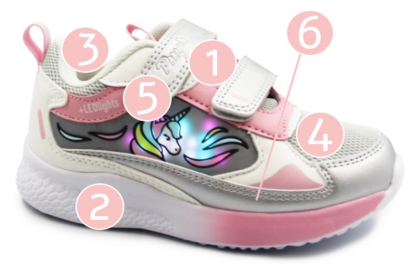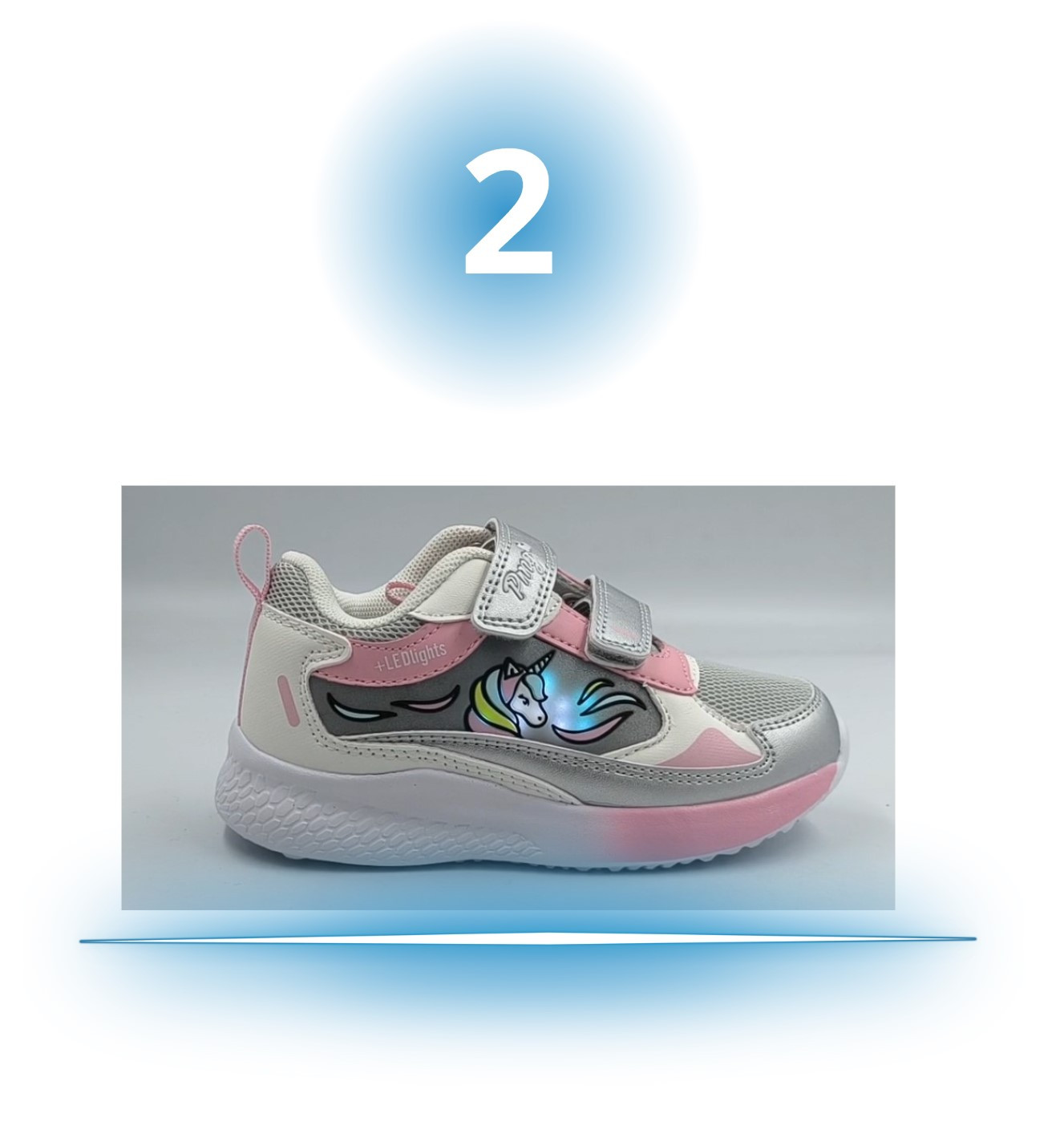 Te dziecięce sneakersy wyróżniają się magicznym motywem jednorożca, który nadaje im wyjątkowy charakter. Kolorowe elementy i precyzyjne wykonanie przyciągają wzrok. Buty są wygodne i lekkie,  do codziennego użytku i aktywności na zewnątrz. Wyjmowana wkładka skórzana, to odpowiednia wentylacja stopy. Miękki materiał wewnątrz obuwia sprzyja komfortowi podczas noszenia. Wygodne, szybkie oraz praktyczne zapięcia za pomocą dwóch rzepów.