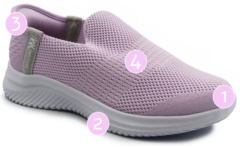 Sportowe półbuty wykonane z oddychających materiałów, które dopasowują się do szerokości stopy. Podeszwa jest bardzo lekka i odpowiada za amortyzację wstrząsów od podłoża, na jakie narażona jest stopa, szczególnie w okolicy pięty. Zapiętek zapobiega przesuwaniu się pięty na boki i stabilizuje stopę, pomaga w prawidłowym rozłożeniu ciężaru ciała.