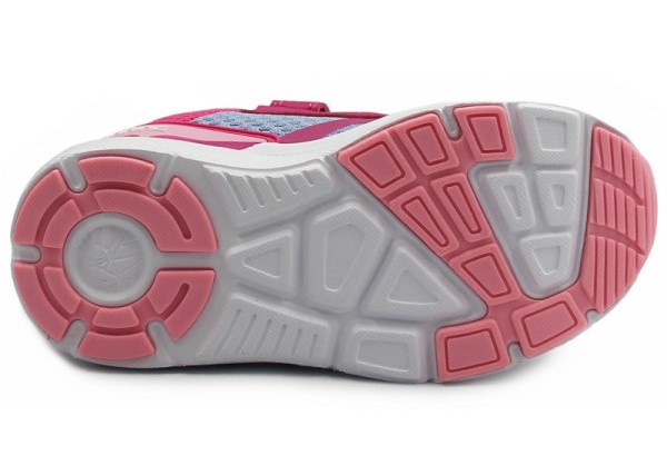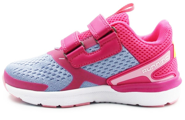 Sportowe buty dziecięce zapinane za pomocą praktycznych rzepów. Wykonane w dziewczęcej kolorystyce. Wnętrze jest wypełnione miękkim materiałem, w celu zapewnienia komfortu. Podeszwa jest bardzo lekka i posiada właściwości amortyzujące wstrząsy podłoża.