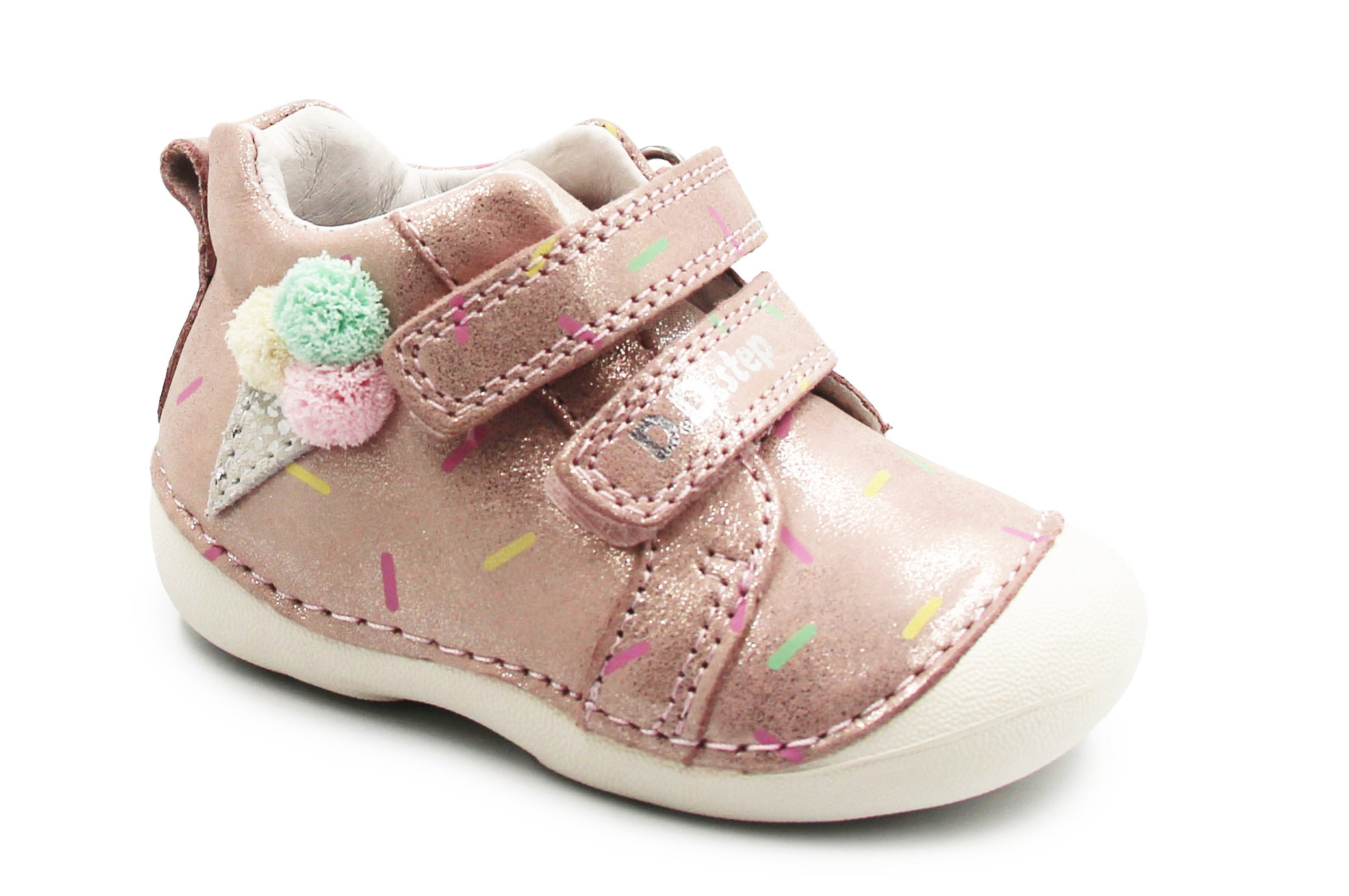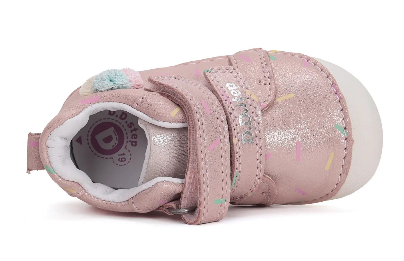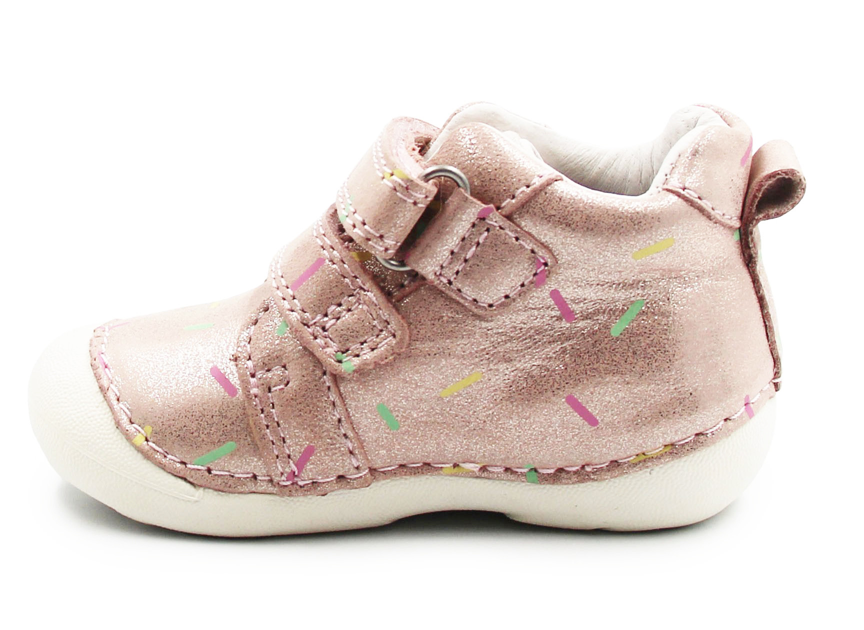 Zarówno z zewnątrz, jak i w środku, wykonane są z miękkiej skóry, co zapewnia komfort i odpowiednią wentylację dla stóp. Ich elastyczna, miękka podeszwa zapewnia swobodę ruchów. Usztywniony zapiętek delikatnie stabilizuje stopę, jednocześnie pozostawiając dużo miejsca na palce. Zapinane za pomocą dwóch rzepów, co jest praktyczne oraz szybkie, a dodatkowo umożliwia dziecku samodzielne zakładanie.