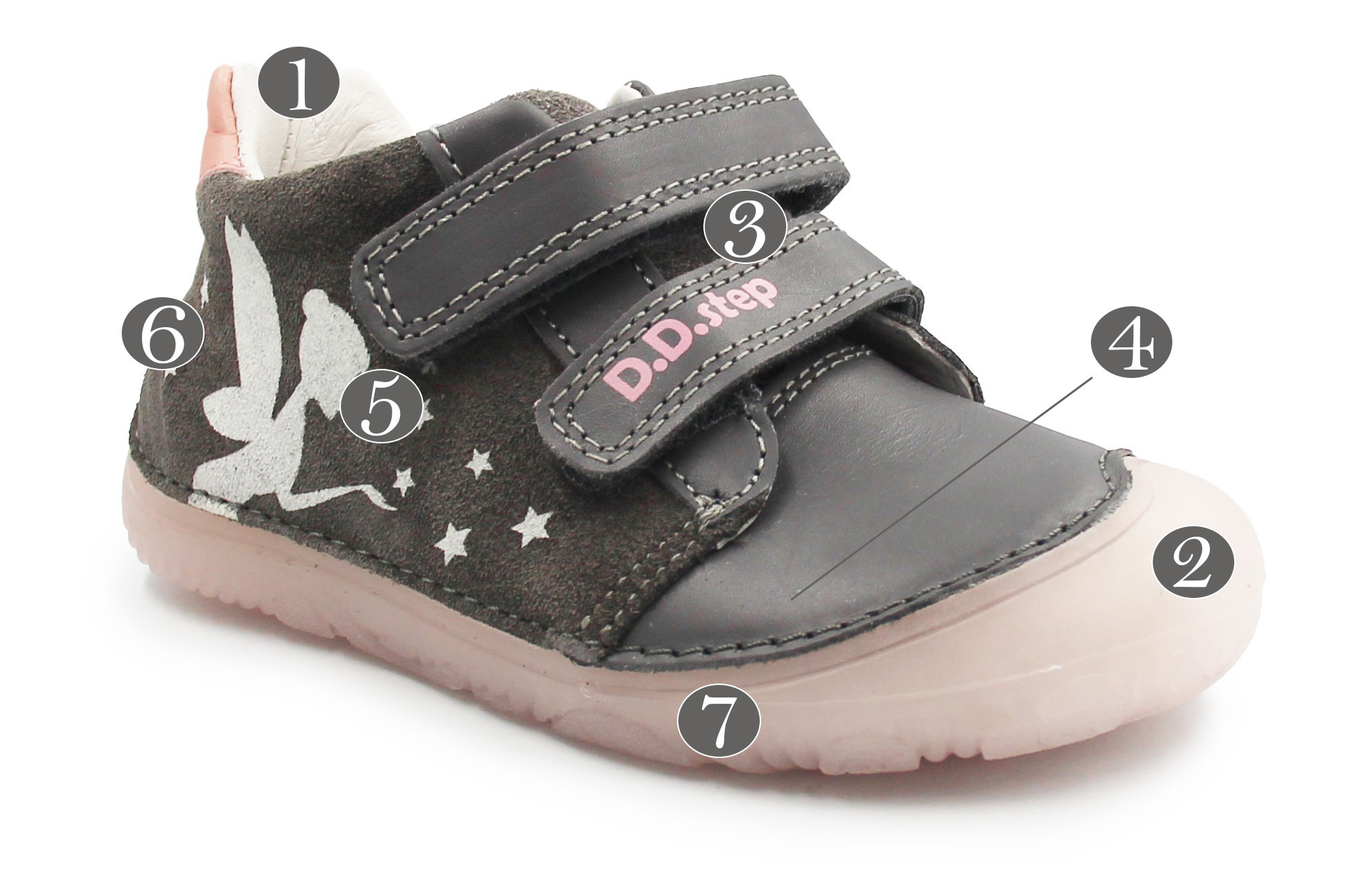 Najważniejsze jest to, żeby dziecko mogło swobodnie ruszać palcami, a but nie krępował ruchu. Takie obuwie pomaga uczyć się chodzenia bez ograniczeń.