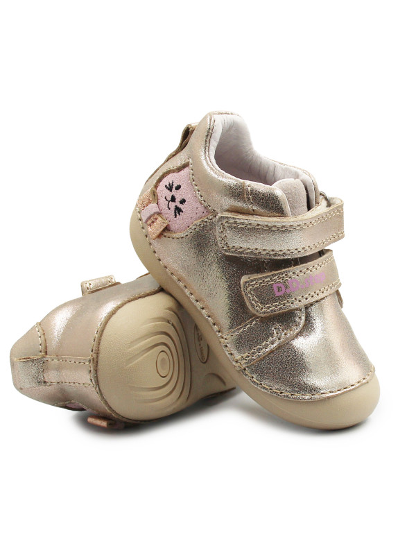 Buty Dla Dziewczynek Na Wiosnę z Kotkiem Na Rzep DD STEP S015-52412B Champagne