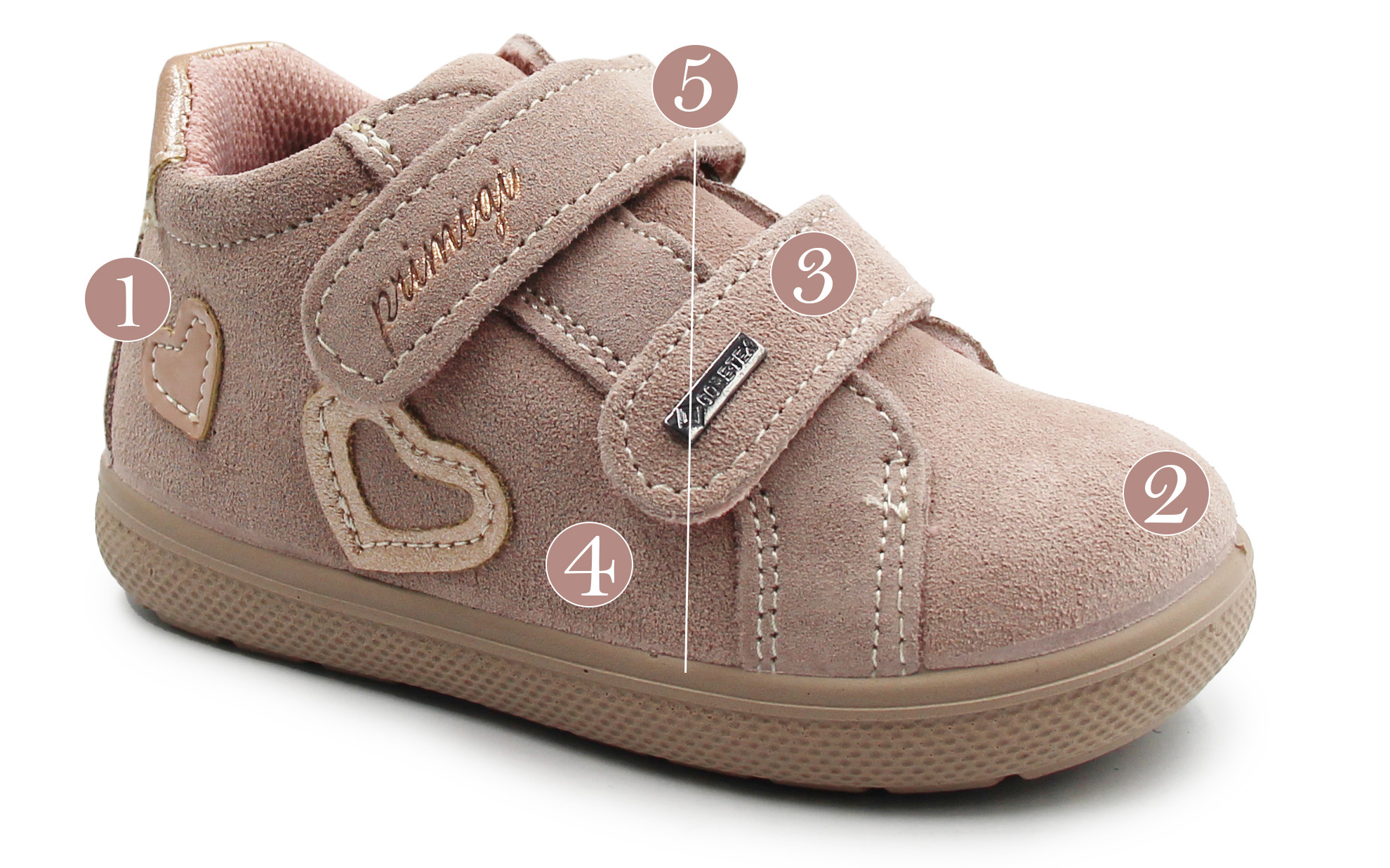 Wykonane z wysokiej jakości materiałów, które zapewniają komfort nawet podczas noszenia. Zapinane za pomocą dwóch rzepów. Wnętrze otulone jest miekkim materiałem, lekko ocieplonym, szersze czubki bucików pozwalają palcom na swobodne poruszanie. W butach zastosowano techologię GORE-TEX. To bardzo cienka warstwa materiału, która jest umieszczona pomiędzy zewnętrznym materiałem buta a jego wewnętrzną podszewką. Jej właściwości to: wodoodporność, oddychalność, wiatroszczelność oraz komfort termiczny.