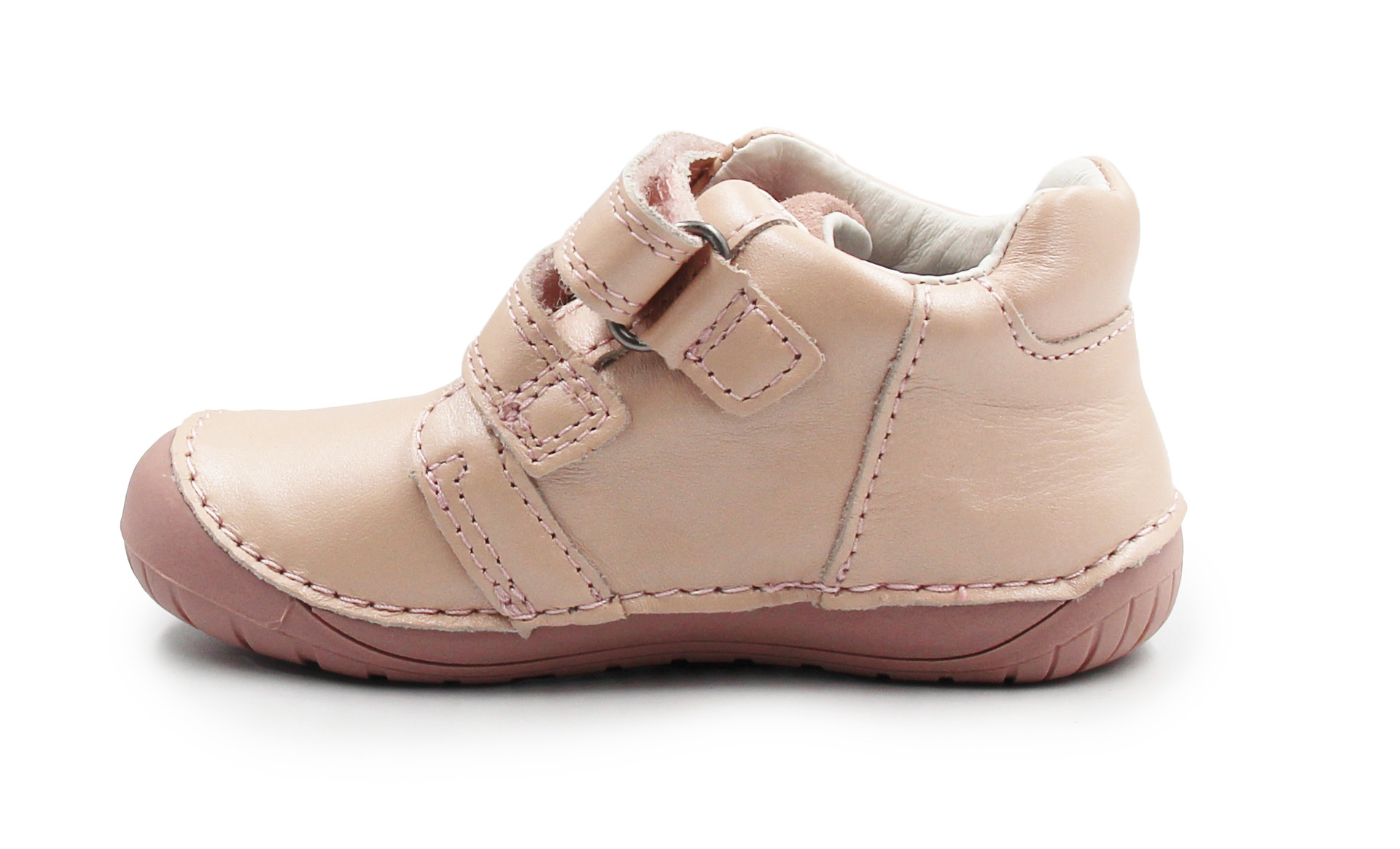 Zarówno z zewnątrz, jak i w środku, wykonane są z miękkiej skóry, co zapewnia komfort i odpowiednią wentylację dla stóp. Ich elastyczna, miękka podeszwa zapewnia swobodę ruchów. Usztywniony zapiętek delikatnie stabilizuje stopę, jednocześnie pozostawiając dużo miejsca na palce. Zapinane za pomocą dwóch rzepów, co jest praktyczne oraz szybkie, a dodatkowo umożliwia dziecku samodzielne zakładanie.