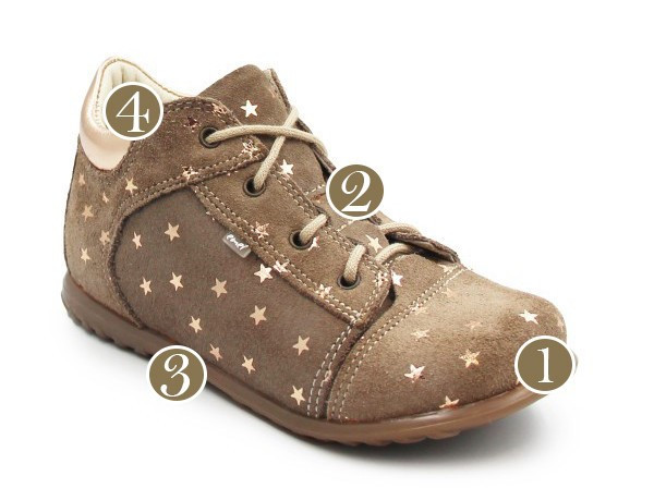 ✅ Usztywnienie tylnej części bucika sięga poniżej kostki, buty muszą pozwalać dziecku siadać na piętach