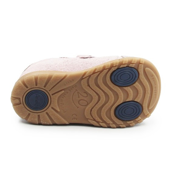 Buciki są przestronne w okolicach palcy, by dziecko miało pełną swobodę ruchu, co jest kluczowe od najmłodszych lat. Wnętrze wyposażone jest w bezchromową wyściółkę oraz inteligentną wkładkę samoprofilującą. Podeszwa posiada trzy punkty podparcia, a usztywniona pięta stabilizuje postawę.