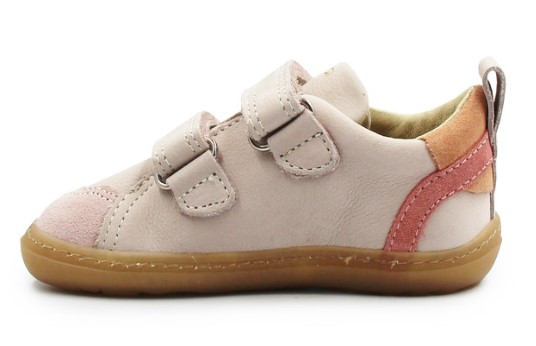 Skórzane buty dziecięce z elastyczną podeszwą, która zapewnia stopie naturalny ruch podczas poruszania. Zapinane za pomocą dwóch praktycznych rzepów. Skórzane wnętrze wypełnione przy kołnierzu miękką pianką.
