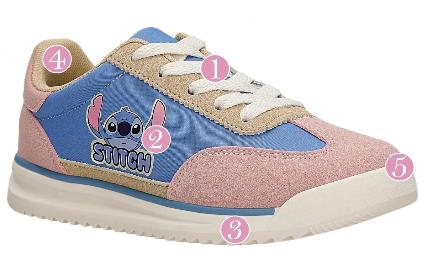 Wykonane z miękkich materiałów. W zewnętrznej stronie buta znajduje się bohater znanej bajki Lilo i Stitch.