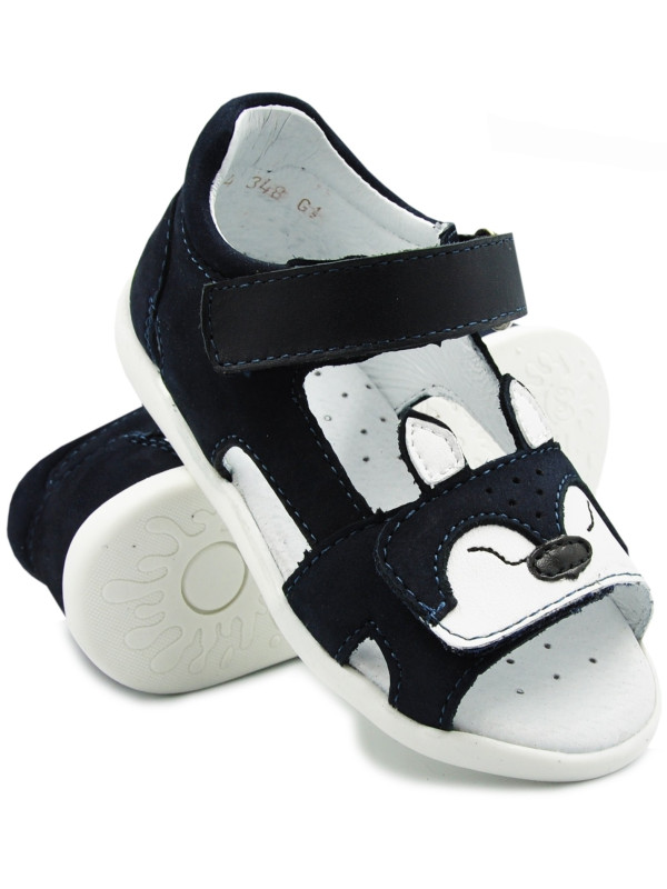 Granatowe sandały z motywem popularnego liska. Zostały wykonane w całości ze skóry naturalnej, skóra chroni stópki przed obtarciami. Dzięki usztywnionej pięcie stopy będą stabilne. Wkładka również skórzana, profilowana - dba o prawidłowy rozwój stóp dziecka. Dzięki zapięciu na dwa rzepy idealnie dopasujesz bucika do nogi. Podeszwa elastyczna oraz antypoślizgowa.