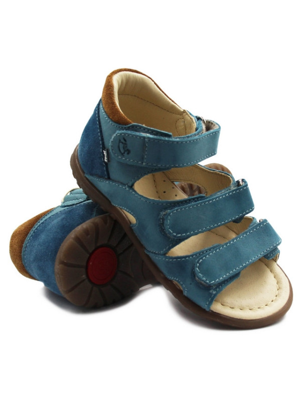 Roczki – buty do nauki chodzenia, idealny wybór dla Twojego dziecka. Te turkusowe sandałki zostały wykonane z najwyższej jakości skóry naturalnej. Lekka i elastyczna podeszwa nie krępuje ruchów. Szerokie noski pozwalają na swobodne poruszanie paluszkami, a sztywne zapiętki gwarantują stabilność stopy. Dzięki skórzanej profilowanej wkładce mamy pewność, że mała stopa rozwija się prawidłowo. Roczki firmy Emel to idealne pierwsze buciki dla Twojego dziecka. Polecane przez ortopedów i pediatrów buty mają Pozytywną Opinię Instytutu Matki i Dziecka, dodatkowo odznaczone są wieloma certyfikatami oraz nagrodami za Najlepsze w Polsce.