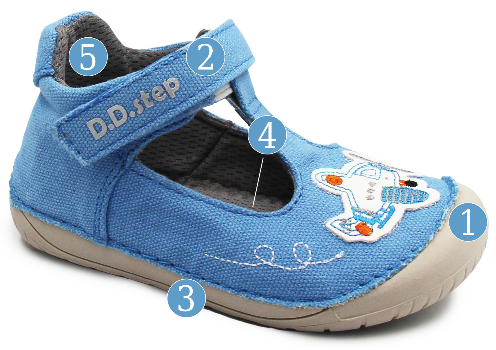 Najważniejsze jest to, żeby dziecko mogło swobodnie ruszać palcami, a but nie krępował ruchu. Takie obuwie pomaga uczyć się chodzenia bez ograniczeń.