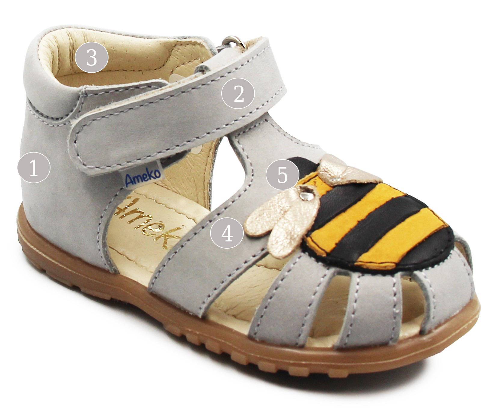 Sandały Dziecięce Na Lato Pszczółka Ameko A6 Bee- Szary