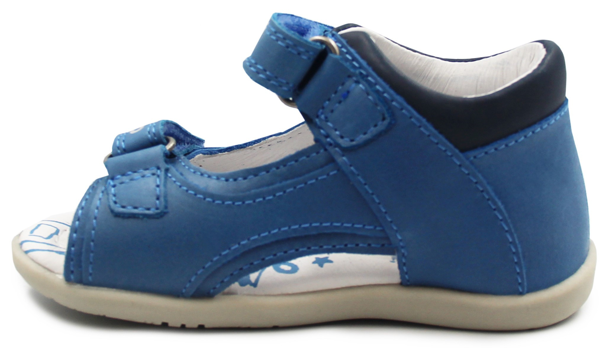 Sandałki dla chłopca z ozdobnym elementem. Wyposażone w regulowane rzepy, które umożliwiają dopasowanie do stopy dziecka. Wykonane z wysokiej jakości skóry naturalnej, a podeszwa posiada wiele właściwości, które wpływają na poprawę komfortu podczas noszenia sandałków.