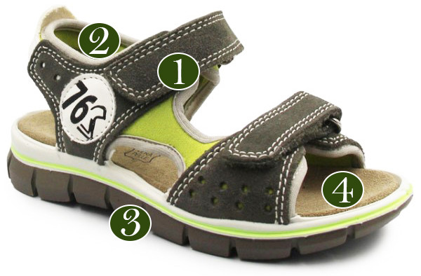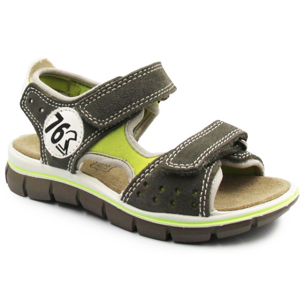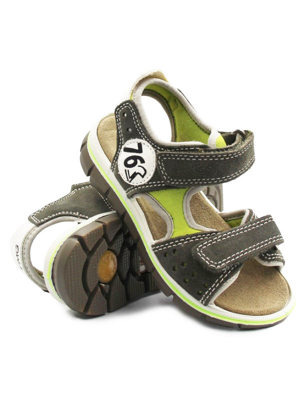Chłopięce sandały wykonane z miękkich tkanin. Wkładka posiada kilka warstw, co zapewnia miękkość i amortyzację podczas chodzenia. Zapinane za pomocą dwóch rzepów, dając przy tym możliwość indywidualnego dopasowania do szerokości stopy dziecka.  Podeszwa posiada system Shock Absorber. Jest podwyższona w okolicach pięty, co daje dodatkową amortyzację, w miejscu gdzie stopa jest narażona najbardziej na wstrząsy od podłoża.
