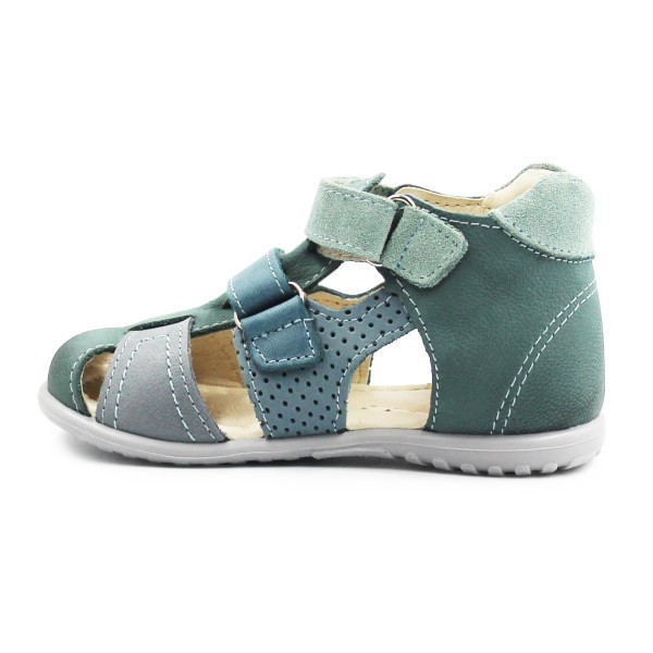 Sandałki z zabudowanymi palcami.  Zapinane za pomocą praktycznych rzepów, który jest szybki w stosowaniu i umożliwia dopasowanie do indywidualnych potrzeb stopy. Podeszwa ORTHO LINE, wspiera prawidłowe podparcie dla stopy dziecka już od pierwszych kroków.