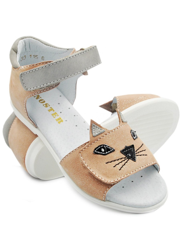Sandały Dziewczęce Mido 162 róż z uroczym wzorem kotka