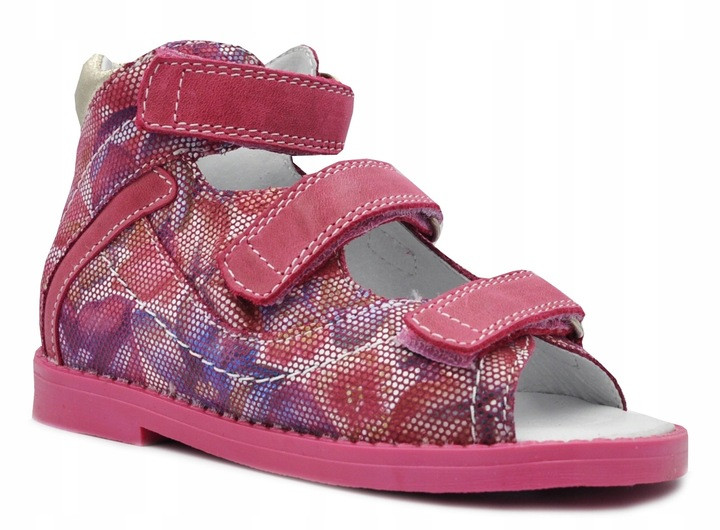 Sandały Buty Mido 800 Dziewczęce Sandały na Rzepy kwiaty-róż