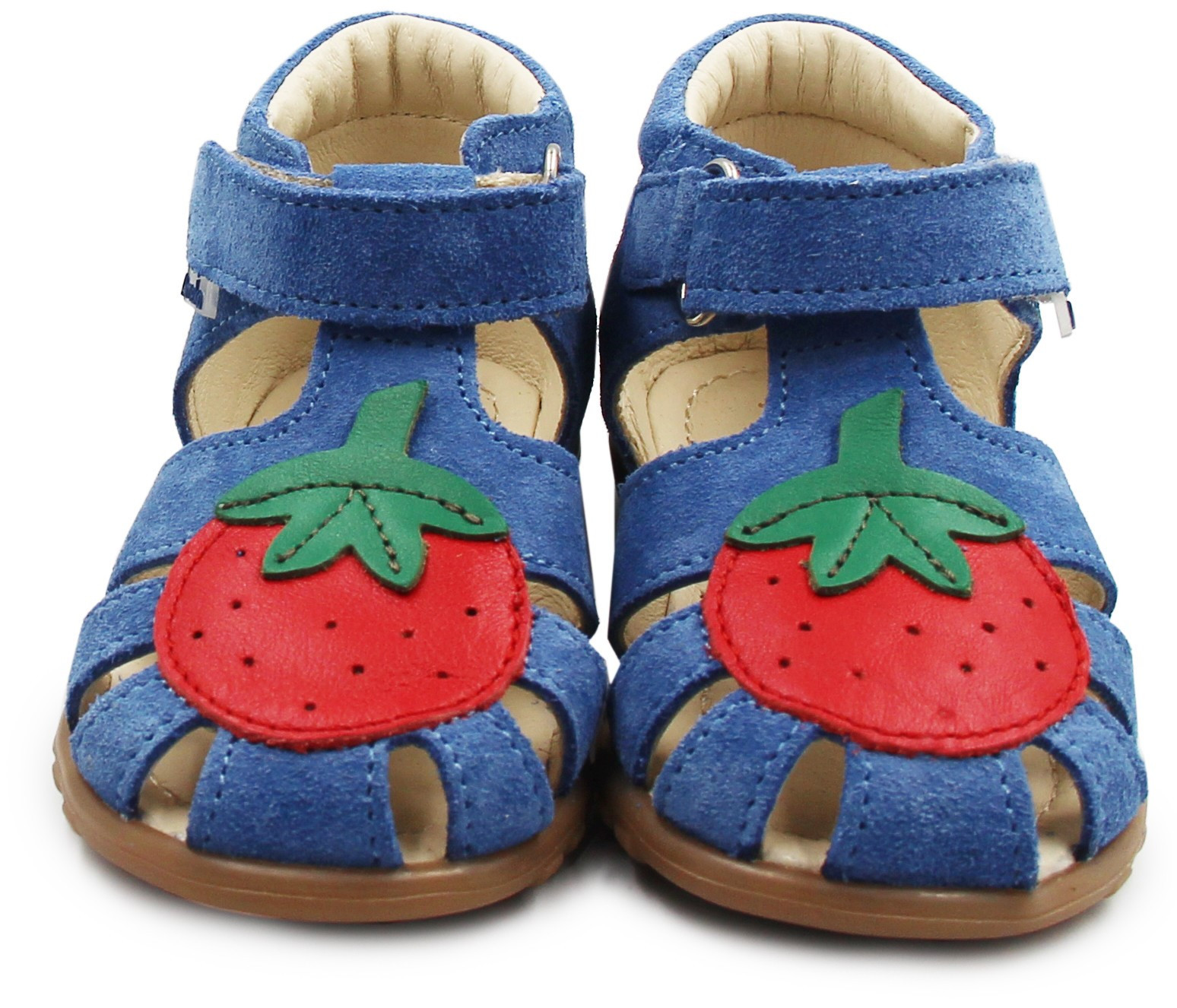 Kolorystyka sandałków oraz wzór truskawki jest uniwersalny, może spodobać się zarówno dziewczynkom jak i chłopcom.