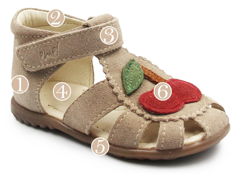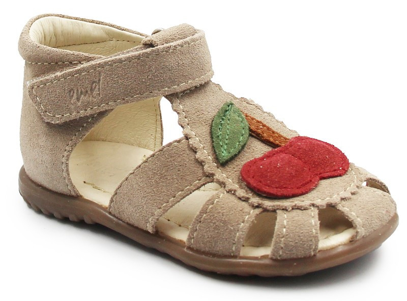 Sandałki z zabudowanymi palcami. Posiadają ozdobny element w postaci wisienki, co dodaje im dodatkowego uroku. Zapinane za pomocą praktycznego rzepu, który jest szybki w stosowaniu i umożliwia dopasowanie do indywidualnych potrzeb stopy. Podeszwa ORTHO LINE, wspiera prawidłowe podparcie dla stopy dziecka już od pierwszych kroków.