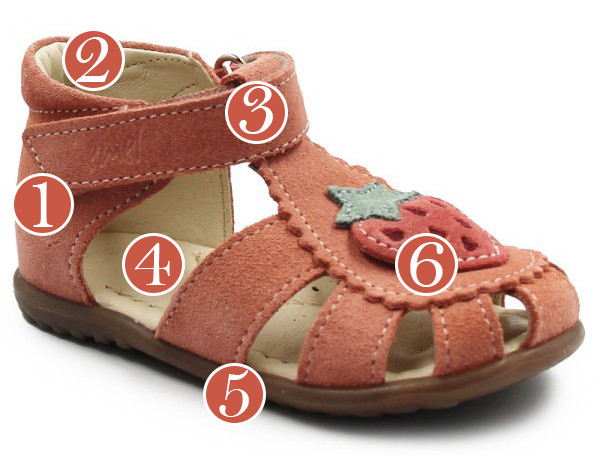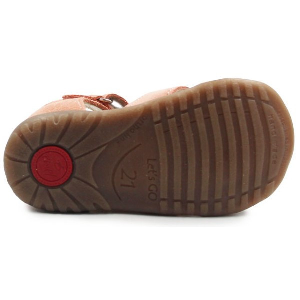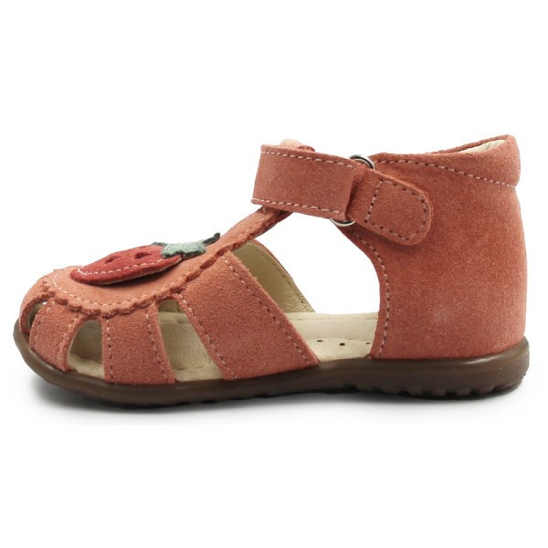 Sandałki z zabudowanymi palcami. Posiadają ozdobny element w postaci truskawki, co dodaje im dodatkowego uroku. Zapinane za pomocą praktycznego rzepu, który jest szybki w stosowaniu i umożliwia dopasowanie do indywidualnych potrzeb stopy. Podeszwa ORTHO LINE, wspiera prawidłowe podparcie dla stopy dziecka już od pierwszych kroków.