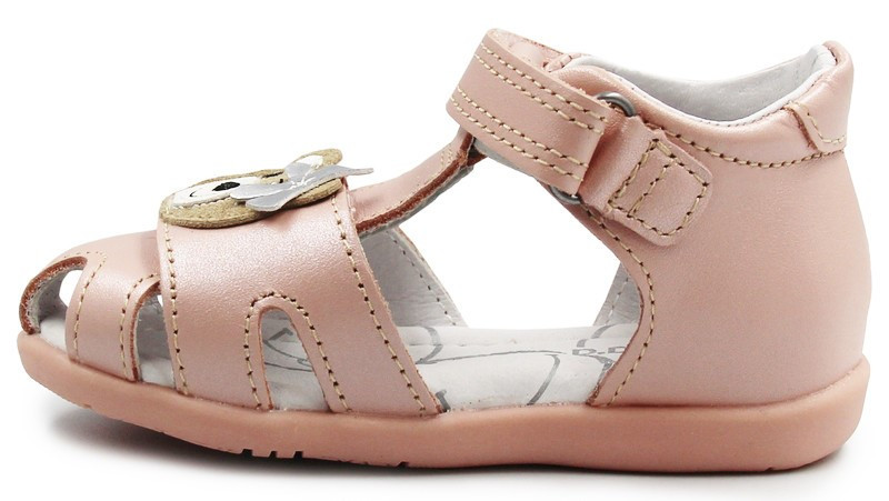 Sandałki dziecięce z uroczym misiem. Wykonane z wysokiej jakości skóry naturalnej, która pozwala skórze oddychać. Podeszwa posiada właściwości amortyzujące wstrząsy podłoża na jakie narażona jest stopa podczas chodzenia. System zapinania na rzepy umożliwia proste i szybkie dostosowanie obuwia do stopy dziecka.