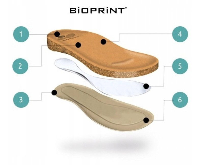 Bioprint to najnowsza technologia, opracowana przez specjalistów Scholl, zapewniająca najbardziej naturalny i wygodny sposób chodzenia. Odpowiednie zagłębienie na piętę, bardzo elastyczna podeszwa, komfortowo wyprofilowane łuki i odpowiednia wysokość obcasa pozwala utrzymać stopę w idealnej pozycji. Dzięki prawidłowo ułożonej stopie uzyskujemy równomierne rozłożenie masy ciała i utrzymanie prawidłowej postawy.