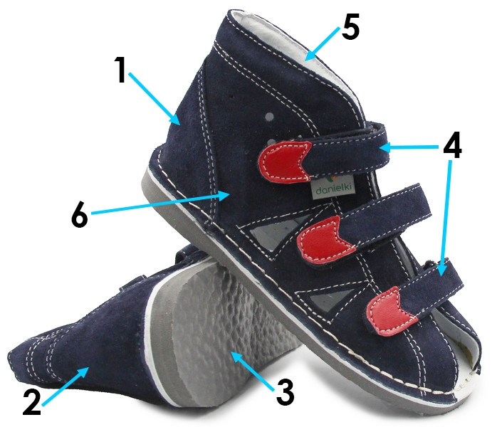 1. Wysoka cholewka – stabilizuje kostkę i piętę, zapobiegając koślawieniu stóp