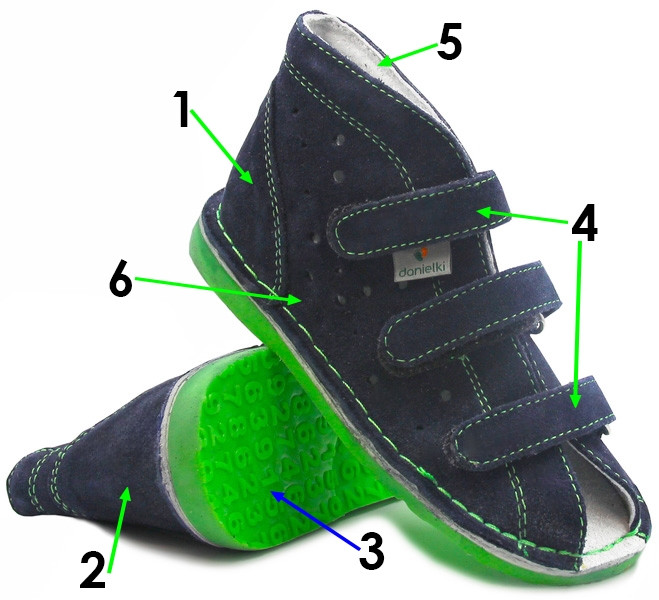 1. Wysoka cholewka – stabilizuje kostkę i piętę, zapobiegając koślawieniu stóp