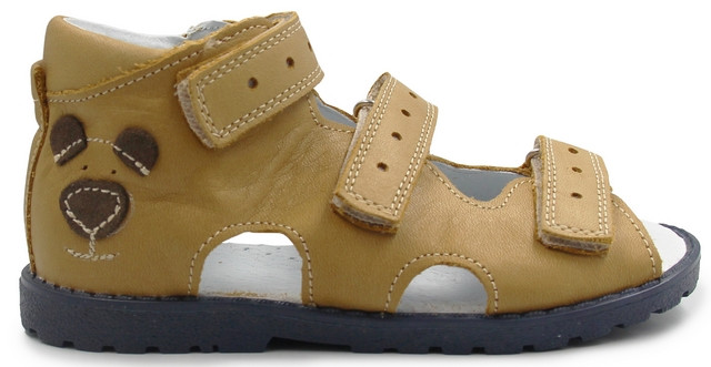 Kapcie ortopedyczne z misiem dla chłopca do przedszkola Kornecki OR 16 rudy skóra