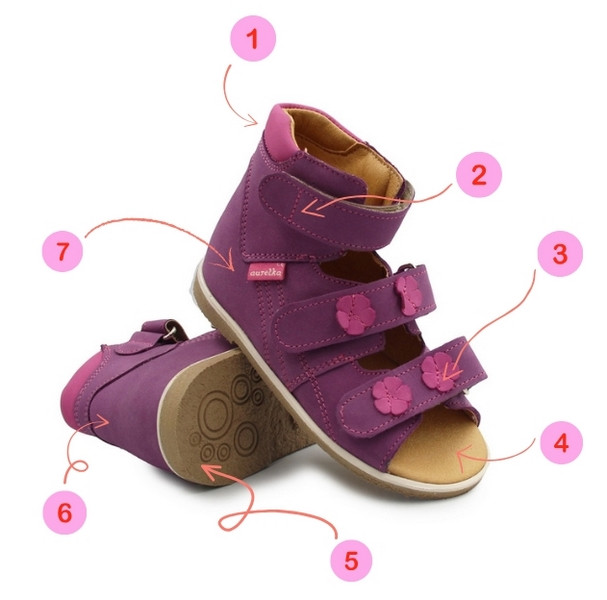 Sandały Aurelka to połączenie stabilnego obuwia ortopedycznego z wygodą i lekkością codziennych butów dla dzieci. Dzięki płaskiej wkładce można w nich stosować indywidualne wkładki lub elementy korygujące, a specjalna konstrukcja sprawia, że buty sprawdzą się również w połączeniu z ortezami.