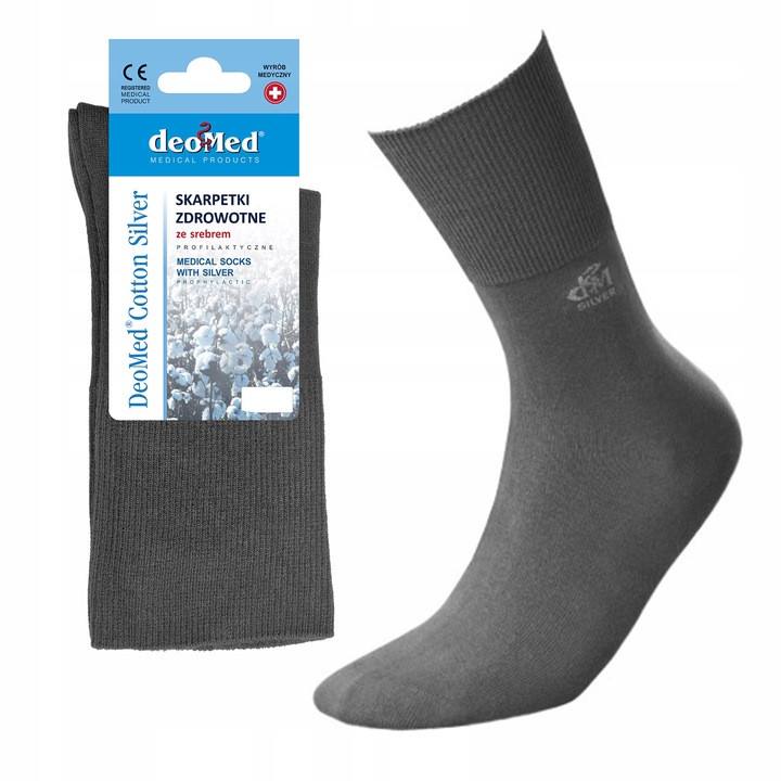 Skarpetki z jonami srebra dla diabetyków szare DeoMed Cotton Silver