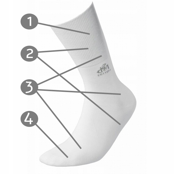 - Bezszwowe i niezwykle delikatne skarpetki zapewniają wyjątkowy komfort, szczególnie dla osób o wrażliwych lub cukrzycowych stopach, dzięki delikatności w dotyku i bezszwowemu łączeniu w okolicach palców.