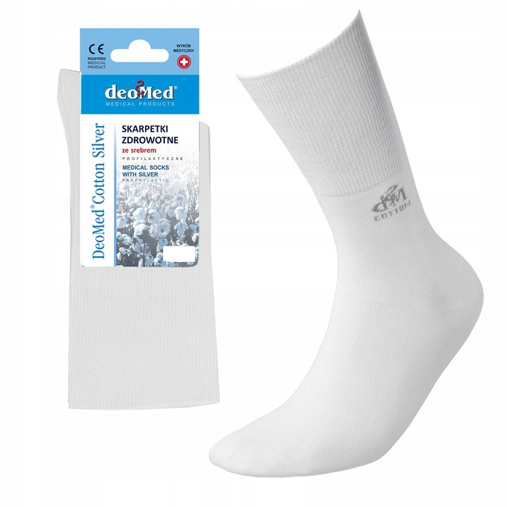 Skarpety bezuciskowe antybakteryjne z srebrem białe DeoMed Cotton Silver
