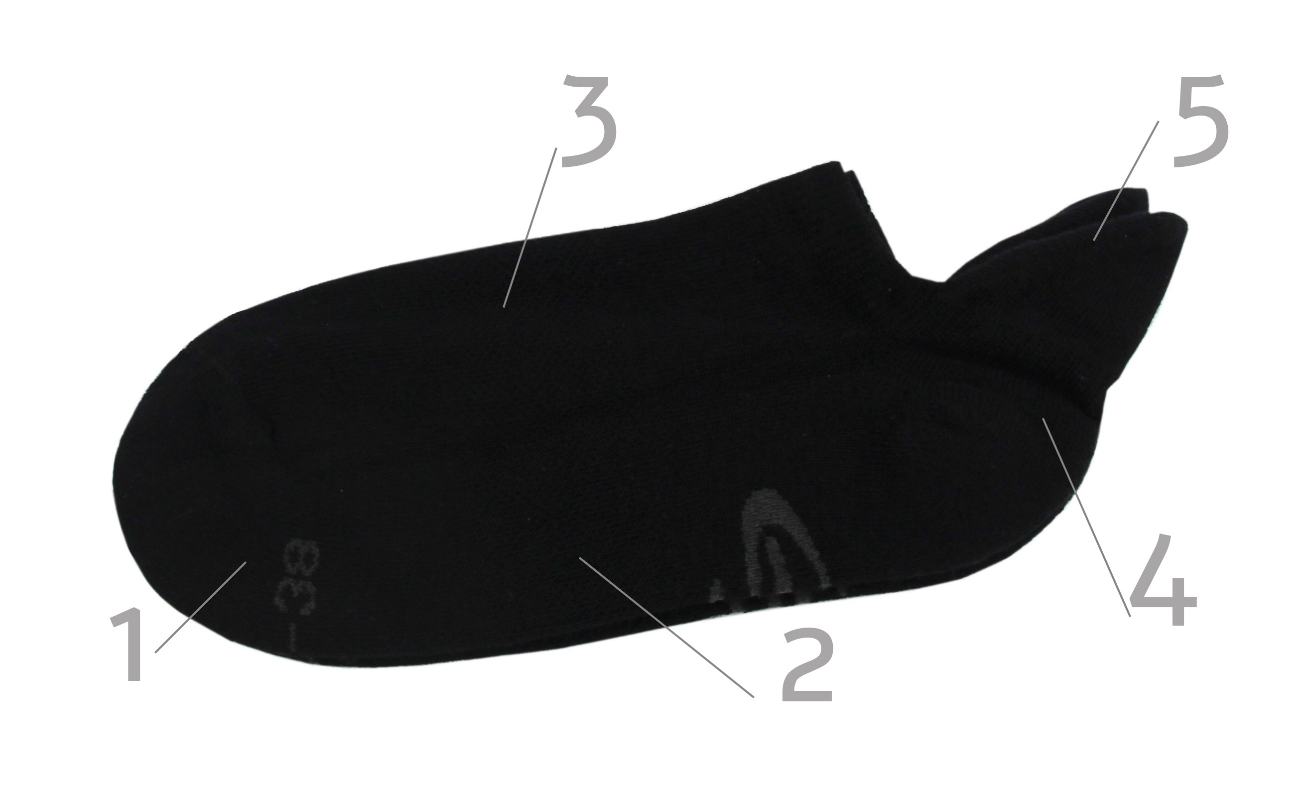 Dzięki trójwarstwowej dzianinie frotte i wentylację przez przewiewny materiał na wierzchu. Dodatek włókna LYCRA® w całej skarpecie gwarantuje elastyczność. Specjalna opaska na śródstopiu oraz profilowana pięta w kształcie litery "Y" utrzymują skarpetkę na miejscu nawet podczas dynamicznych ruchów. Brak szwów nad palcami zapobiega otarciom, właściwości antyzapachowe podwyższają komfort oraz higienę.