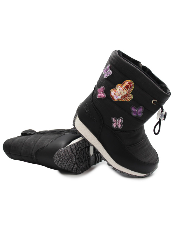 Ocieplane Śniegowce na suwak dla chłopca Wojtyłko 2z24133 czarne z dodatkowymi motylkami