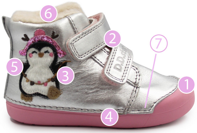 Najważniejsze jest to, żeby dziecko mogło swobodnie ruszać palcami, a but nie krępował ruchu. Takie obuwie pomaga uczyć się chodzenia bez ograniczeń.