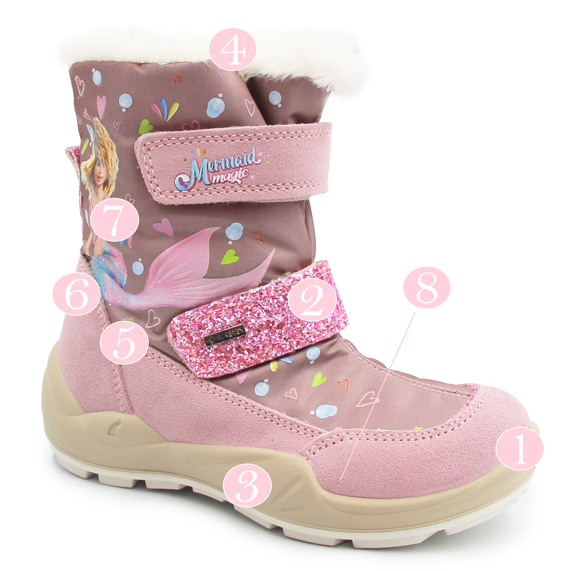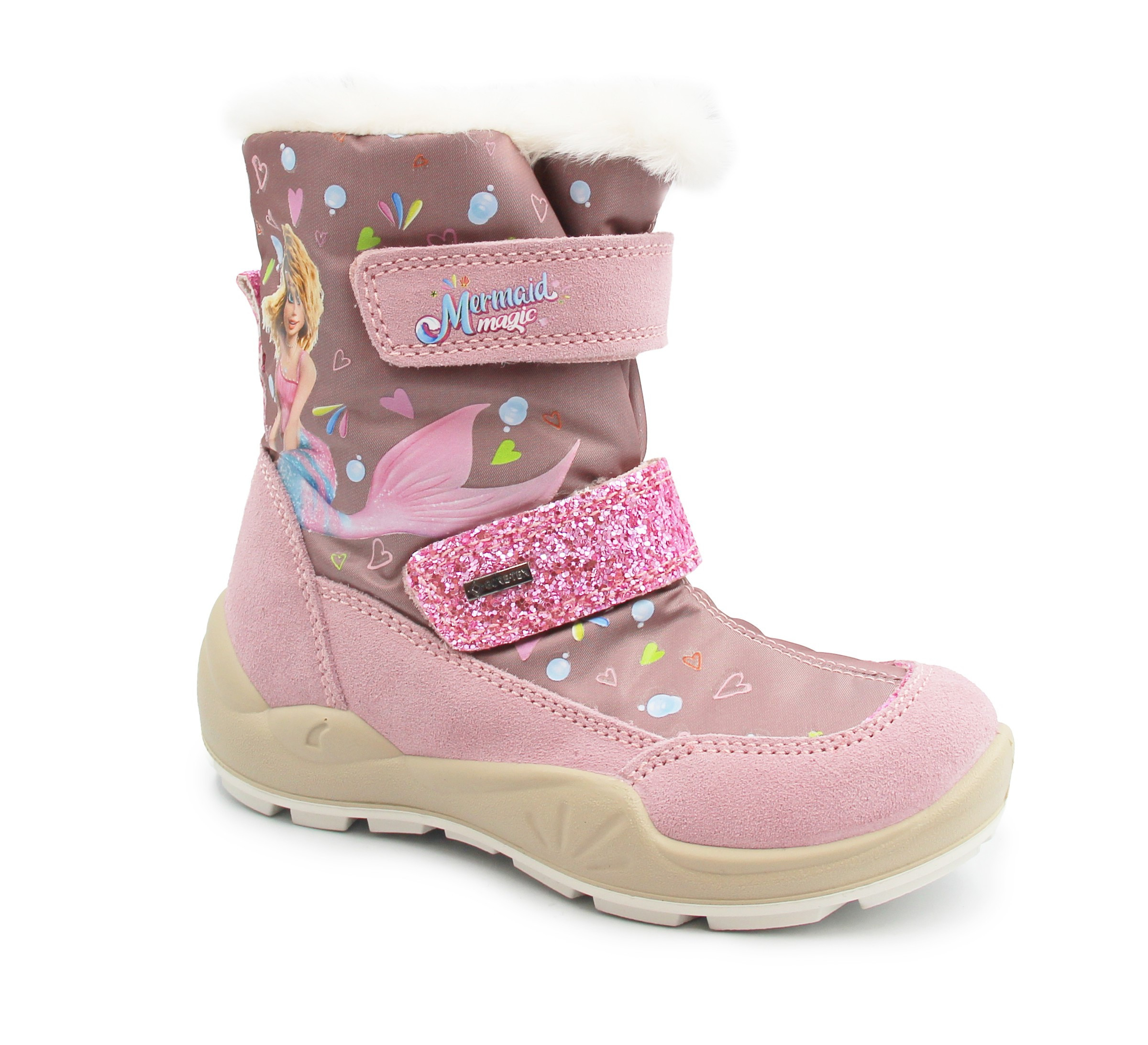 Różowe śniegowce Primigi z motywem bajkowej syrenki Mermaid Magic to idealny wybór dla małych miłośniczek magii i kolorów. Buty zachwycają wyglądem i praktycznością – są lekkie, ciepłe i odporne na zimowe warunki.