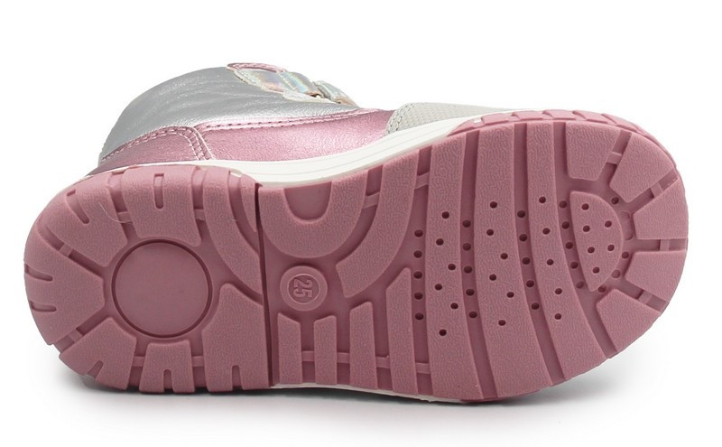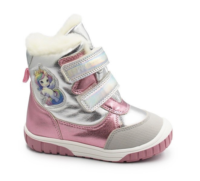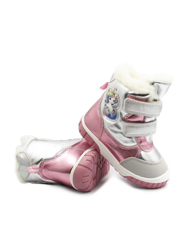 Wygoda i bajkowy wygląd podczas zimowych spacerów. Połyskujące, srebrno-różowe wykończenie oraz urocza naszywka z jednorożcem sprawią, że każda dziewczynka poczuje się w nich wyjątkowo. Wnętrze buta oraz wkładka zostały wyłożone gęstym, miękkim futerkiem, które gwarantuje komfort termiczny.